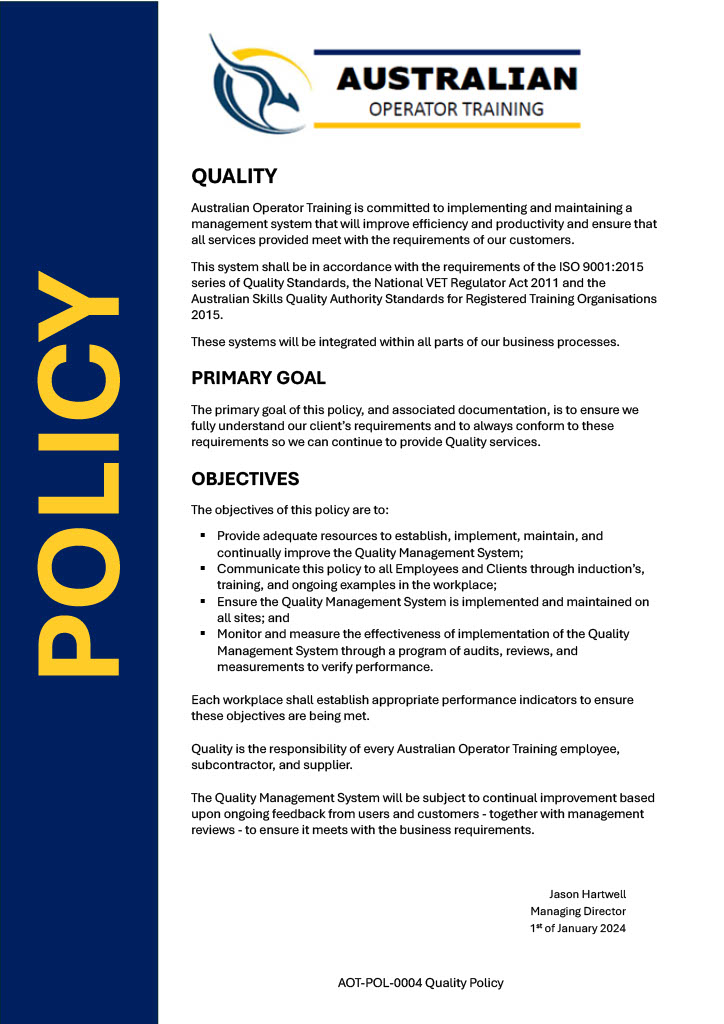 To achieve this commitment, Skill Path has adopted a safety risk management framework designed to identify and assess safety risks to ensure that suitable measures are identified, implemented and reviewed. In doing so, we recognise the importance of consultation ongoing promotion of safety awareness. Our core values are based on the premises that we must care for ourselves, our co-workers and our company and that nothing comes before the safety of anyone that enters our facilities.